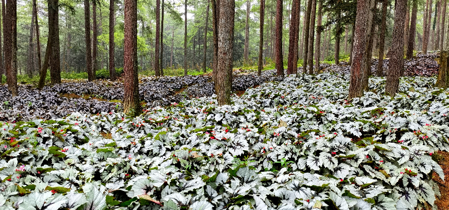 Among hundreds of Terra Nova plants being used at Mt. Jinfo Natural Park, select varieties planted include Begonia COCOA ‘Enchanted Sunrise’, Begonia ‘Cool Breeze Glacier’, Begonia ‘Cool Breeze Rouge’, Begonia ‘Fireworks’, Begonia HOLIDAY ‘Silver Bells’, Begonia HOLIDAY ‘Snowflake’, Begonia SILVER ‘Treasure’, Begonia SPECTRE ‘Silver’, Begonia T REX ‘First Blush’, and Begonia T REX ‘Painter’s Palette’, among others.