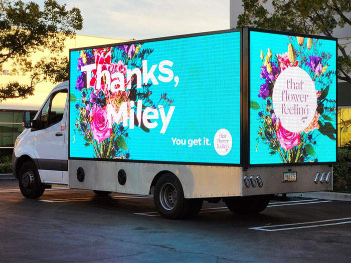 Steve Dionne, Executive Director at That Flower Feeling said: “When one of the world’s most famous pop stars sings about what your business stands for, you must join the conversation. By thanking Miley on a larger-than-life scale, we’re able to stoke the cultural fire and make sure That Flower Feeling appreciates its newest, unofficial ambassador.”