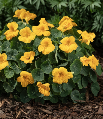 Oh Baby! A new color in the popular Baby series of nasturtiums! If you love Baby Rose, then Baby Gold is a “must-add” for your garden.  The Baby series is known for being a petite-flowered, mounding variety with healthy, dark foliage ideal for containers and small space gardens. AAS’ expert judges praised the uniformly compact plants that produced intense gold-colored flowers that did not fade. Their compact habit means less “flower flopping” with their blooms remaining upright throughout the season. The golden yellow color is contrasts beautifully with the dark-green foliage. Bonus: both the leaves and flowers are edible!