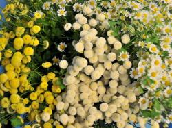 These daisy-like and button-shaped flowers hail from the Aster Family, and they are composed mainly of picnics, puppy dogs, and sunshine. Okay, the first two aren't true, but Matricaria is a natural summertime crop, so sunshine does play a big part in bringing these blooms to their cheerful form.