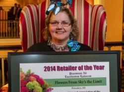 The Michigan Floral Association has chosen Flowers from Sky's the Limit, Petoskey, MI, as the Retailer of the Year. The award was presented at the 2014 Great Lakes Floral Expo, held at the Amway Grand Plaza Hotel in Grand Rapids, MI. Shop owner Jackie Burrell plays a large role in planning the Expo and contributes her time and expertise in making the meeting a success. Her willingness to always help in her community and in the floral industry has been a cornerstone of her shop.