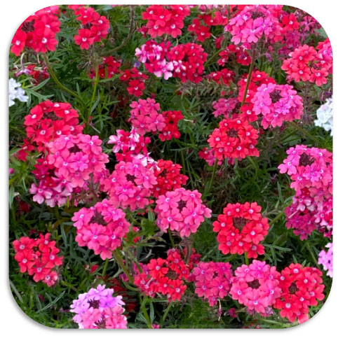 Kiss your summer worries goodbye with Sweetheart Kisses Verbena! This low-growing wonder, praised by AAS judges for its vibrant red, rose, pink, and a hint of white blooms, adds instant charm to any garden. Delicate, airy foliage (tenuisecta means “thinly cut”) forms a soft cushion, setting the stage for an explosion of color that lasts all season long. Sweetheart Kisses thrives in sun-drenched days and dry spells. Plant this versatile plant in the ground, let it grow as a stunning groundcover, or fill your containers with its cheerful blooms. And the best part? Sweetheart Kisses is a breeze to grow! Start from seed and in just 55 days, your garden will be buzzing with butterflies and bees, all drawn to its irresistible nectar. So, give your garden a kiss of summer magic with ‘Sweetheart Kisses’ Verbena. It’s easy, eye-catching, and loved by pollinators— what more could you ask for?