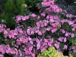 Tuff Stuff™ hydrangea’s semi-double to double florets form an attractive mass of lacecap blooms that open with creamy centers and deepen to rich pink or blue, depending on soil PH. These mountain hydrangeas are tougher than they look, however. Bred for improved bud and stem hardiness, they are reliable rebloomers that flower on both new and old wood. Even in cooler climates, Tuff Stuff hydrangea produce new blooms from early summer to frost.