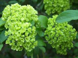 There are few flowers with such a fresh green colour as the Viburnum. The round flower sprays also generate a light, sweet perfume. The flowers are beautiful in white and green spring bouquets, with Syringa for example.