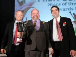 Vincent Petrovsky, AAF, AIFD, owner of Heaven and Earth Floral in West Palm Beach, Fla., won the grand prize — a silver cup, $3,000 cash prize and a complimentary registration to SAF Phoenix 2013 — to which he responded with an enthusiastic, “Wahoo!” when it was announced at the “Stars of the Industry” Awards Dinner later that evening. Brita Edlbauer, AIFD, owner of Floral Art Studio in Orlando, Fla., was first runner-up. Brenda Veasman, AIFD, owner of Flowerama on Pacific in Omaha, Neb., was second runner-up.