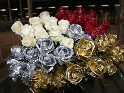 The roses are carefully sorted by length, maturity stage and bud size. The half-open flowers are dipped in a bath of liquid wax heated to about 70 degrees Celsius. The rose is then immediately dipped into a bath of cold water to make the wax firm. No colour is too extreme: black, blue, red, gold or silver, whatever colour takes you fancy. And it's an adaptable process; colours come in gloss or matt and can even have snow or glitter added.