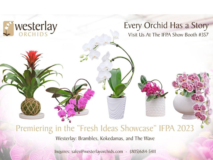 Carpinteria, Calif. – Orchids are more than beautiful flowers. They can symbolize an emotional connection to a loved one or the keepsake of a special memory: a gift from daughter to mother, a meaningful reminder of a loved one, or providing the joy of reblooming your orchid. Every orchid has a story. Westerlay Orchids grows 4 million orchids from ‘flask to finish’ in Carpinteria, California. They select the best varieties from breeders worldwide, utilize greenhouse technology, then package with care and provide after-purchase guidance to support new consumers. Join Westerlay in October in Anaheim and experience the orchids from this third-generation farming family that knows the value of quality, connection, and caring for the environment.