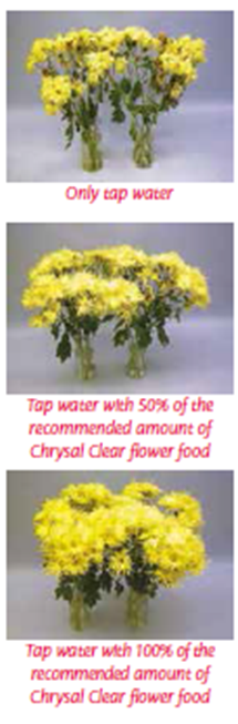 Underdosing of flower food is most critical and shortens the vase life the most. Less than 80% of recommended dosage can lead to stem discolouration, under development of flowers and limp petals. But also overdosing can lowers the life expectancy. Overdosing flower food by more than 150% of the recommended amount can lead to stem discolouration and burnt leaves.