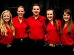 Rachel Purdy (Wyoming), Will Pohlman (Arkansas), Alicia Smith (Texas), Kalyn McKibben (Oklahoma), Demi Snider (Ohio) were chosen as the 2015 National Beef Ambassador Team at the annual National Beef Ambassador competition, which is funded in part by the beef checkoff and managed by the American National CattleWomen, Inc, contractor to the beef checkoff. (Pictured L to R: Kalyn McKibben, Rachel Purdy, Will Pohlman, Alicia Smith and Demi Snider.)