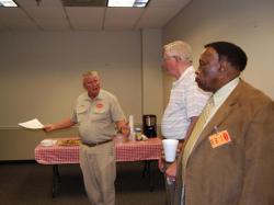 Photo Caption: Tyson Foods plant manager Wally Taylor, at left, made the announcement Wednesday to Shelbyville Mayor Wallace Cartwright and County Mayor Eugene Ray about the 40 new jobs and $5 million investment being made at Shelbyville's poultry processing plant.