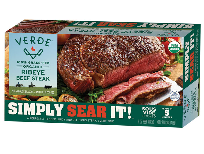 Sous vide and reverse-sear have been a trend among chefs and in-the-know foodies, but the power of this cooking method will now invade the grocery meat case alongside its raw counterparts. By seasoning its 100% grass-fed, organic ribeyes and butcher’s steak medallions with a savory steakhouse rub, vacuum-packing, and slow-cooking the meat over low heat for over an hour, Verde has made it possible for consumers to prepare an amazingly tender, flavorful, and completely foolproof steak in under 5 minutes.