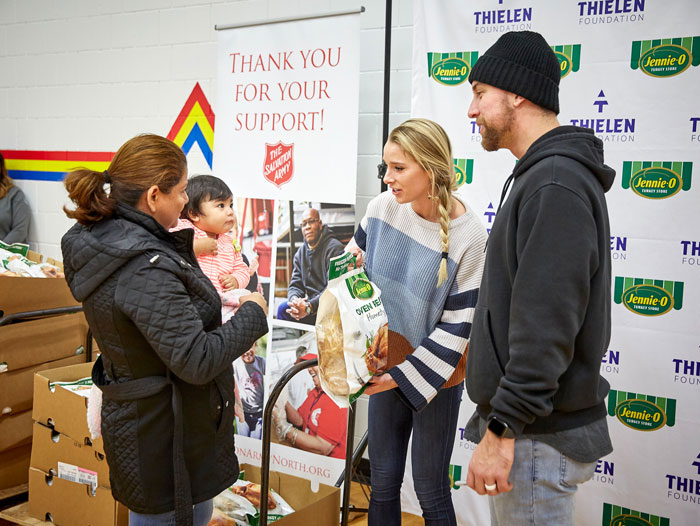 “Teaming up with organizations like Jennie-O and the Salvation Army for today’s giveaway was a natural fit as they share many of the values that we do,” said Adam Thielen. “With Jennie-O based right here in Minnesota and the fact that Caitlin and I were born in Minnesota, it’s especially wonderful to see us all come together to give back to the communities that have given us so much over the years.”