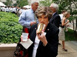 The crowd will not go back to their offices hungry. The 4,000 hot dogs, corn dogs, brats and other sausages expected to be served, if laid end to end, would equal the height of three Washington Monuments and are enough to circle the Capitol Rotunda four times.