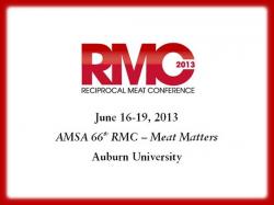 Champaign, IL – The American Meat Science Association (AMSA) is hosting the AMSA 66th Reciprocal Meat Conference (RMC) June 16-19, 2013 at Auburn University in Auburn, AL. The AMSA 66th RMC is designed as an interactive program which is tailored to bring attendees the very best and inspiring educational experience from the industry’s leading experts. This year’s featured keynote speakers include: