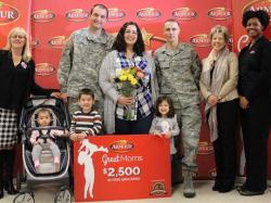 Liens was celebrated during an assembly at the Commissary in front of her family, friends, and fellow military moms. To recognize her for being a "Great Mom" Armour surprised Liens with $2,500 in free groceries at the Commissary.
