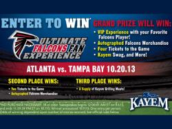 To celebrate the new partnership with the Atlanta Falcons, Kayem has launched the Ultimate Falcons Fan Experience Sweepstakes. Beginning Sept. 6th and continuing through Oct. 7th, fans can visit http://a.pgtb.me/w9wB65 to enter to win a private VIP shopping trip with an Atlanta Falcons player at a local Publix Super Market, where fans can shop the aisles and choose up to $250 in groceries. The grand prize winner will also win great tickets and a VIP parking pass to the Falcons game versus Tampa Bay on Oct. 20th and can also take home an autographed item of Atlanta Falcons merchandise. Two second place winners will receive two tickets to the Falcons game versus Tampa Bay and a signed item of Atlanta Falcons merchandise.