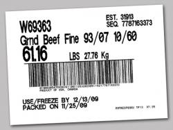 60 pound cases of “GRD Beef Fine 93/07 10/60.” Each case bears the identifying