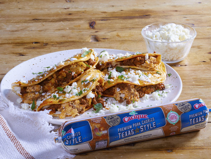 “Our latest innovation is not just a delicious Mexican-style chorizo; it’s a tribute to Texas’ rich culinary heritage, a fusion of tradition and innovation that will ignite conversations around family tables statewide,” said Tirso Iglesias, Chief Operating Officer, Cacique Foods. “From our table to your cookouts, Cacique’s Texas-Style Premium Pork Chorizo adds an authentic flavor and flair to everyday classics like chorizo & egg tacos or even a savory breakfast burger.”