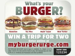 The “What’s Your Burger Urge?” promotion continues Cargill’s innovative efforts to provide value-focused ground beef resources – beyond the meat product – for consumers. Recipe pads located at the fresh ground beef case feature the four regional gourmet burger recipes. A website, MyBurgerUrge.com, provides additional recipes and serves as the entry point for a consumer prize giveaway that further drives consumer interest. The prize giveaway allows consumers to enter to win an expenses-paid trip for two people to one of the four burger-themed destinations that mirror the burger recipes: