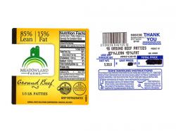 - 5.3-lb. trays containing sixteen pieces of “85% Lean | 15% Fat MEADOWLAND FARMS Ground Beef 1/3 LB. PATTIES,” with a use or freeze by date of April 18, 2015.