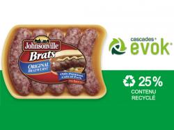 Kingsey Falls, QC – Cascades inc. (TSX: CAS), a leader in the recycling and manufacturing of green packaging and tissue paper products, is pleased to announce the arrival of Cascades EVOK® on the American market in collaboration with Johnsonville Sausage. This is the first national sausage brand to use polystyrene foam trays which are made of 25% recycled content and now manufactured in the United States.