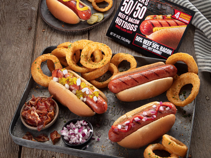 Slater’s 50/50 Beef & Bacon Hotdogs are currently distributed in select Kroger stores in Atlanta, Nashville, Louisville and Columbus, Ohio, Ralphs Grocery Stores across California as well as other retailers across the country. The product includes four franks per pack and retails between $5.99-$6.99 per package.