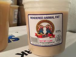 - 1-lb, 2-lb and 3-lb plastic tubs of “Chicharrones J&J Rendered Animal Fat”
