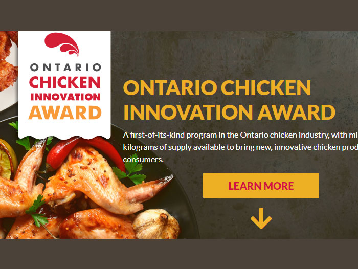 BURLINGTON, ON – Chicken Farmers of Ontario (CFO) is pleased to launch the application process for its second Ontario Chicken Innovation Award, part of the organization’s commitment to help bring new, innovative Ontario chicken products to the plates of consumers. This year, CFO has millions of kilograms of chicken available for successful applicants.