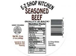 - 16-ounce and 4-pound tub containers of "E-Z SHOP KITCHEN SEASONED BEEF " that bear the establishment number "EST. 19665" in the USDA mark of inspection.