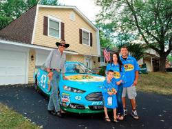 And, Petty wasn't done giving gifts either. The racing legend invited the Wallace family to the NASCAR Sprint Cup Series race this weekend at Chicagoland Speedway located in the city of Joliet, Ill. Petty gave them authentic Eckrich crew uniforms and race hats in a gift basket also filled with Eckrich products and asked the family to be honorary crew members of the No. 43 Eckrich Ford team.