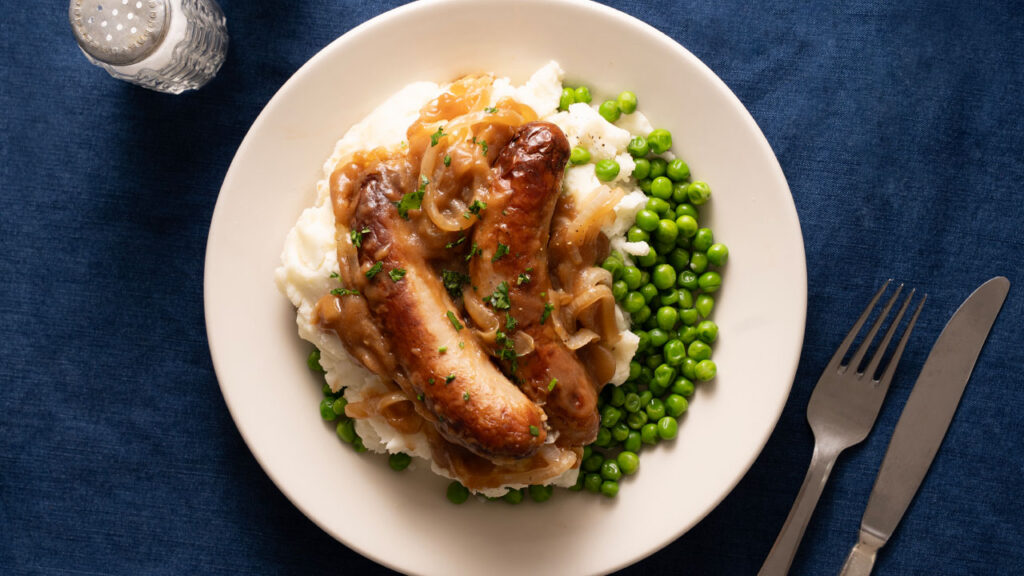 RJ Balson British-Style Bangers are made in the United States using the family’s traditional recipe and US sourced pork. Known in the UK as a “banger,” it takes the form of a classic fresh pork sausage that has been a staple of everyday cooking for generations. The name comes from the tendency of earlier sausages to burst in the pan as they cooked.
