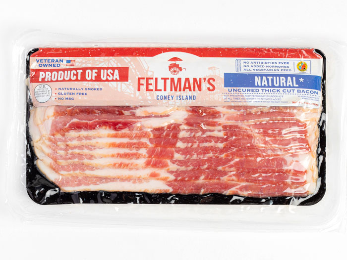 NEW YORK (August 2, 2021) – The name behind America’s first hot dog—Feltman’s of Coney Island (est. 1867)—has officially expanded their critically-acclaimed all-natural product line with the launch of Feltman’s Thick-Cut Uncured Bacon, now available exclusively at Feltmans.US