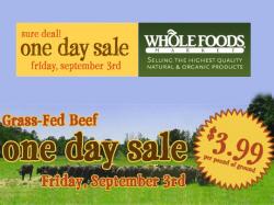 AUSTIN, Texas — For the first time and just in time for grilling this Labor Day weekend, Whole Foods Market (Nasdaq: WFMI) is having a nationwide one-day meat special on Friday, September 3, offering ground grass-fed beef at $3.99/lb., a significant savings for this increasingly popular meat known for its positive impact on the cattle, the environment and local communities, as well as being a leaner alternative to grain-fed beef.