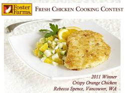 LIVINGSTON, Calif. – The West Coast's premier Fresh Chicken Cooking Contest is inviting home, amateur and professional chefs to stir up locally-inspired cooking creativity with the call for entries for the third annual Foster Farms Fresh Chicken Cooking Contest (entries accepted beginning February 29). The winner will receive a grand prize of $10,000 plus a one-year supply of Foster Farms fresh chicken*. The deadline to enter is June 3, 2012 at 11:59:59 p.m. PDT.
