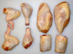 chicken parts, whether skin-on or skinless or bone-in or boneless, such as, but