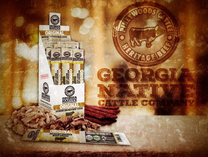BUENA VISTA, GA — Georgia Native Cattle Company is launching a new line of beef sticks made with Certified Animal Welfare Approved by A Greener World (AGW), Certified Grassfed by AGW beef. The skillfully crafted Hickory Smoked Beef Sticks in Original and Jalapeno flavors are produced using only high-welfare beef from Georgia Native Cattle Company’s herd of Pineywoods cattle and exemplify true supply chain sustainability and ultimate farm-to-fork traceability.