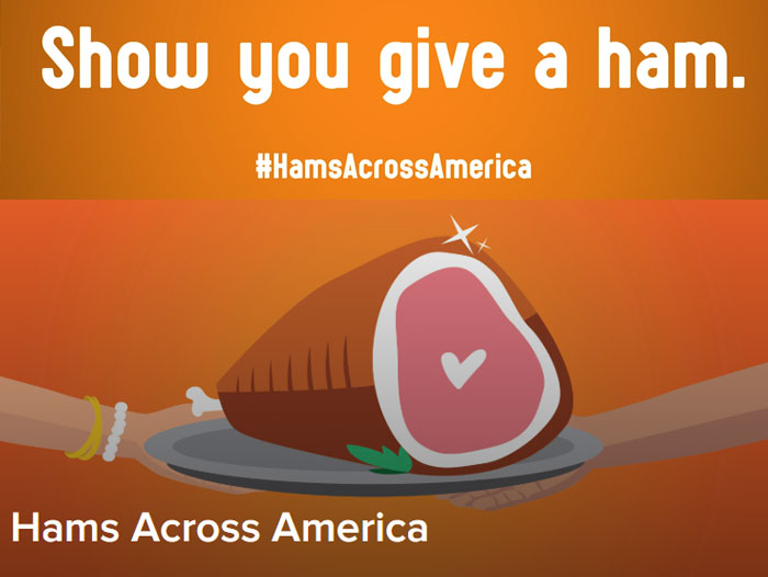 “Each year Hams Across America kicks off on Giving Tuesday, which is the first Tuesday after Thanksgiving,” said David Newman, president of the National Pork Board. The programs concept is simple: Give a ham to those in need or to those you care about this holiday season.”