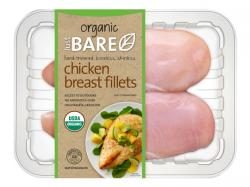The limited market expansion includes organic Just BARE boneless skinless chicken breast fillets, the most often purchased chicken product by U.S. consumers. The brand plans to expand its nationwide offering to also include a boneless skinless chicken thighs product, which is available through SuperTarget now. Suggested retail pricing is $9.99 per pound for organic Just BARE boneless skinless chicken breast fillets. The random-weight packages contain approximately one pound of chicken.