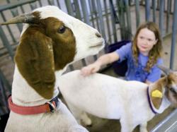 six-month old Boer meat goats Taz, left, and Billy Bob before showing them and