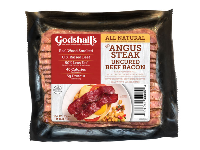 Godshall’s Angus Steak Uncured Beef Bacon debuted on January 1st at more than 260 Sam’s Club stores in 20 states including: Al, GA, SC, LA, MS, TN, TX, NC, VA, KY, OH, WV, CO, NM, SD, CA, HI, AZ, UT and NV. They are sold in a 24-ounce club package with a retail price of $12.98. Following the launch at Sam’s Club, it will also be available at retailers in a 10-ounce package.