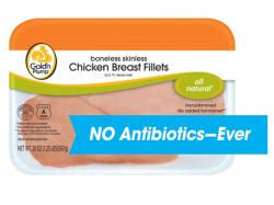 A majority of core Gold’n Plump products, such as small and family packs of boneless skinless chicken breasts, chicken thighs and ground chicken, will carry both the No Antibiotics–Ever claim and American Humane Certified seal by summer 2016. All remaining Gold’n Plump value-added retail, deli and foodservice products will transition by the end of 2019.