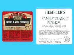 • 2.25-lb. vacuum-packed packages containing “HEMPLER’S FAMILY CLASSIC PEPPERONI NATURAL SMOKE FLAVORING ADDED” with a “packed on” date of 10/10/2017 and case code 59716.