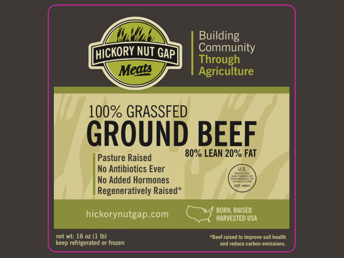 Hickory Nut Gap Farms’ new labels are currently in production and will be on all retail grassfed beef and pasture raised pork packages beginning this spring. Products include Ground Beef, our Pork Sausage lineup, as well as retail-labeled steaks and roasts.