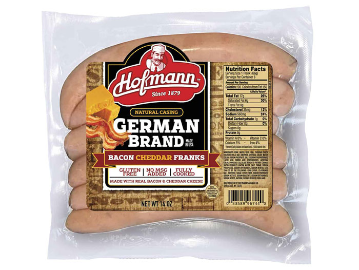 SYRACUSE, N.Y. — Hofmann Sausage Company announces the production and distribution of Hofmann Natural Casing Bacon Cheddar Franks. This product is product line extension from the Natural Casing German Franks, Hofmann’s number one selling item.
