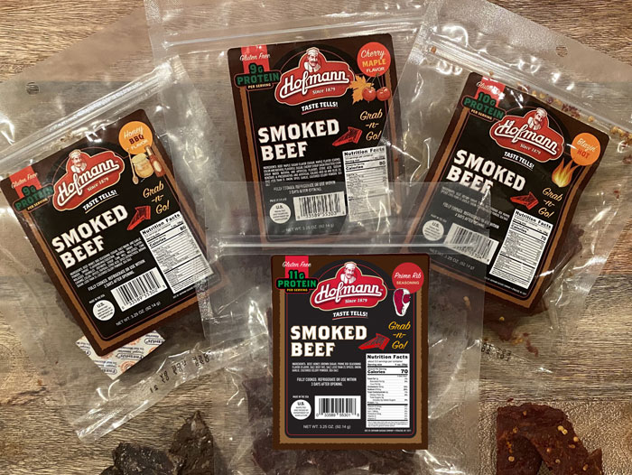 SYRACUSE, N.Y. — Hofmann Sausage Company announces three new flavors of smoked beef jerky and two flavors of summer sausage to its meat snack category product line. In addition to Prime Rib Smoked Beef Jerky, Hofmann now offers Cherry Maple, Blazin’ Hot, and Honey BBQ. New Hofmann Summer Sausage products in Hickory and Hickory & Cheddar are also now available for retail brick and mortar stores and online at hofmannsausage.com.