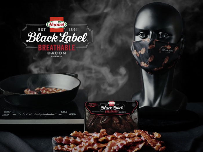 AUSTIN, Minn. — The makers of HORMEL® BLACK LABEL® Bacon, a leader in breakfast meats in America, announced today the launch of HORMEL™ BLACK LABEL™ Breathable Bacon, a first-of-its-kind innovation. HORMEL™ BLACK LABEL™ Breathable Bacon is a revolutionary face mask featuring the latest in pork-scented technology with two-ply multi-fiber cloth to keep the delicious smell of bacon always wrapped around your nose and mouth. To learn more, watch a sizzling video here.
