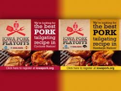 Depending on their favorite team, fans can enter either the Cyclone Pork Playoffs or the Hawkeye Pork Playoffs.