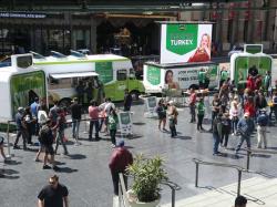 During the tour’s first stop in Los Angeles, people entered the tasting booth to give a California turkey burger a try. A whopping 87 percent of participants rated the experience “love.” At Miami’s SunFest, Florida’s largest waterfront music and arts festival, everyone enjoyed Miami street-style turkey tacos, a local beachfront favorite, and an enthusiastic 91 percent of samplers rated them “love.” In Denver, at the Cinco de Mayo festival, attendees entered the tasting booth to try a turkey chili verde, and 83 percent “loved” the turkey. It is growing evidence the love for turkey continues to grow.