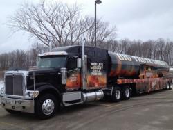 The Johnsonville Big Taste Grill is not your run-of-the-mill backyard barbecue. Weighing more than 53,000 pounds and measuring 65 feet long, this giant grill can keep 12 grill masters busy cooking more than 750 brats at a time. A semi truck pulls the grill and the whole system is self-sufficient with hot and cold-running water, electricity, sound system, a prep station, and a refrigeration unit.