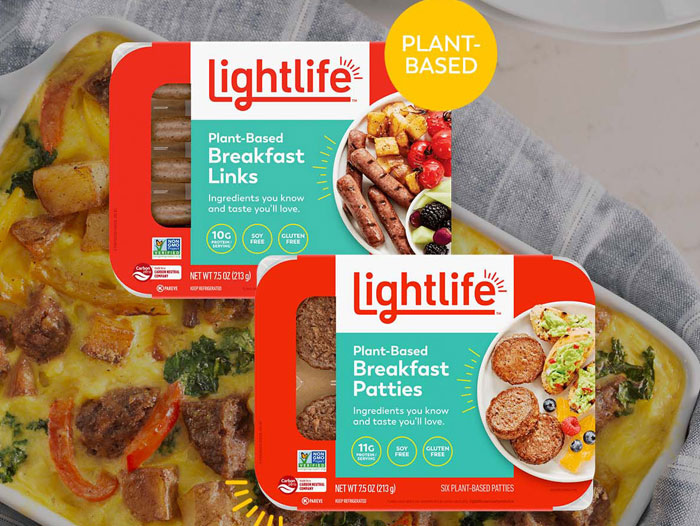 Lightlife Plant-Based Breakfast Links and Plant-Based Breakfast Patties offer the same great taste and juicy texture as traditional breakfast sausages with less saturated fat and 10g and 11g of protein per serving, respectively. Lightlife Plant-Based Breakfast Links and Plant-Based Breakfast Patties are gluten-free, soy-free, and non-GMO. An excellent source of balanced nutrition, these breakfast items help consumers feel confident about their choices without compromising on delicious flavor.